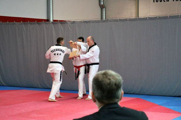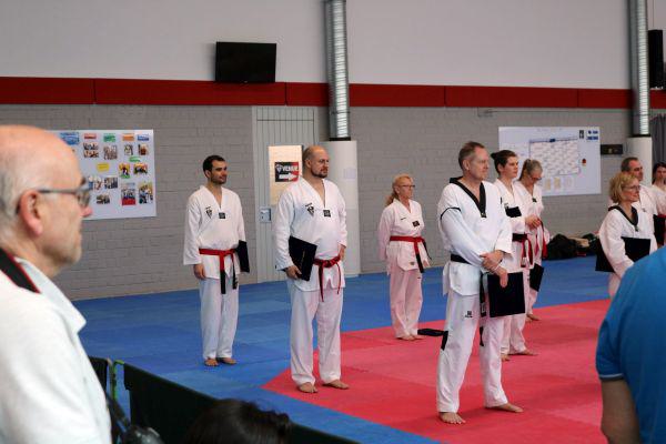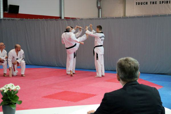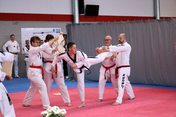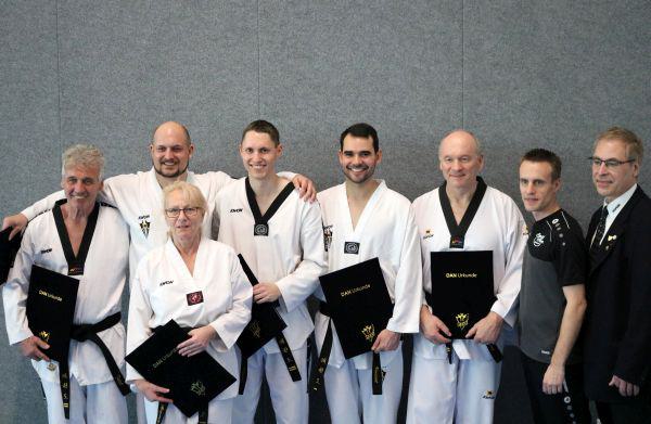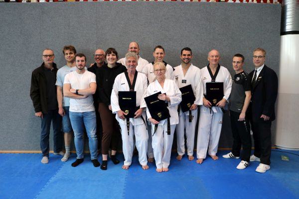 Trotz Einschränkungen durch Corona, Quarantäne und Hallenmangel haben sich Angelika Frauenfelder, Vincent Fafard, Dominik Welke, Josef Thalmaier, Daniel Bauer und Karl‑Heinz Strauß in den letzten Monaten auf ihre DAN‑Prüfung vorbereitet. Unter den kritischen Augen der Prüfer bewiesen sie am Prüfungstag ihr Können in den Kategorien Poomsae (Formenlauf), Ilbo‑Taeryon (Einschrittkampf) und Hosinsul (Selbstverteidigung). Im Anschluss zeigten sie beim Wettkampf in voller Schutzausrüstung Schnelligkeit und Reaktionsfähigkeit. Zum Abschluss absolvierte jeder Prüfling einen Kombinations‑Bruchtest, bestehend aus zwei aufeinanderfolgenden Techniken und einen bzw. zwei weitere Einzel‑Bruchtests.