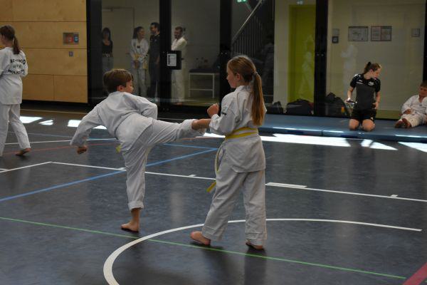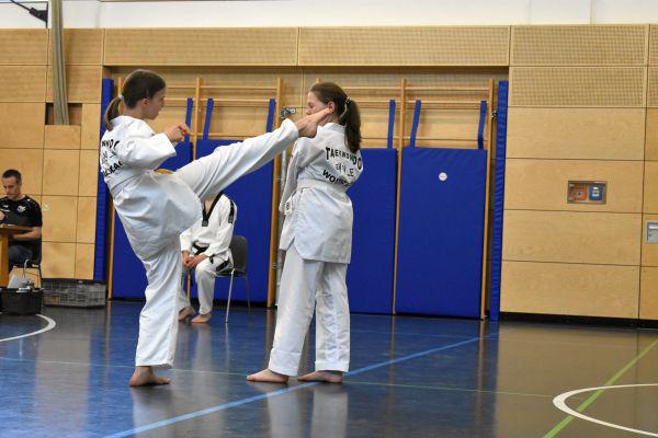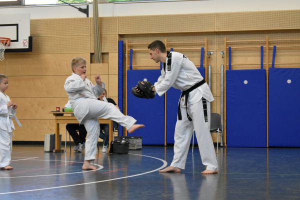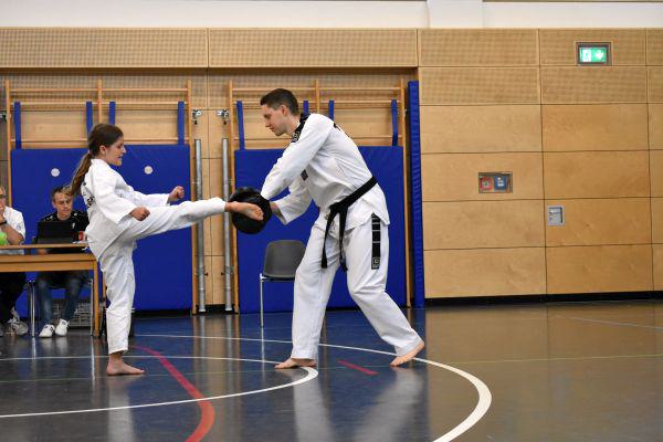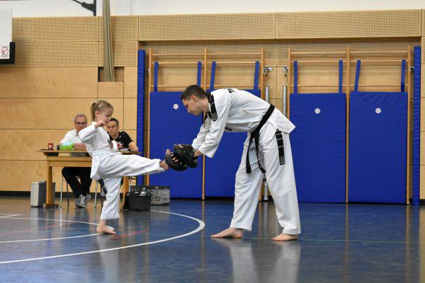 Die 15 Vereinsmitglieder zeigten vor Prüfer und Großmeister Uwe Neumann (6. DAN) ihr Können, entsprechend ihrer Gürtelgraduierung. Das Prüfungsprogramm beinhaltete dementsprechend den traditionellen Formenlauf, die erlernten Grundtechniken, die Kenntnis über Selbstverteidigung, Steps und Kicks. Für unseren höher graduierten Prüfling stand neben dem grundlegenden Prüfungsprogramm noch ein Bruchtest an.
