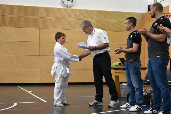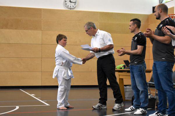Nach viel Lob und persönlichen Ratschlägen von Prüfer Uwe Neumann konnten wir allen 15 Prüflingen ihre Urkunde zum nächsthöheren Kup überreichen.